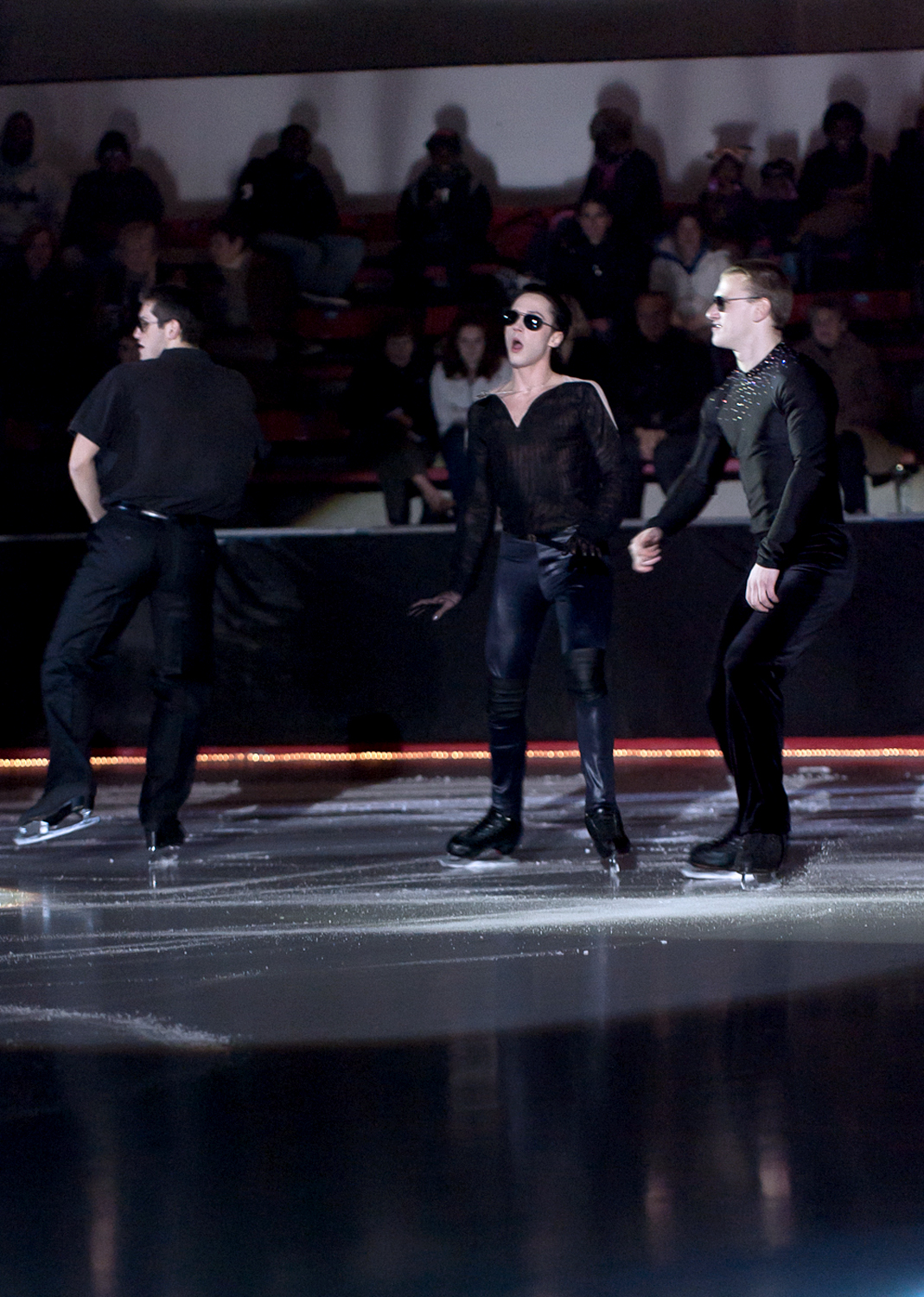 He debuted the pants for American audiences in October 2010 in LA at “All That Skate,” and then wore the entire costume a few weeks ago at Improv-Ice when he skated to LMFAO’s “Sexy and I Know It.”